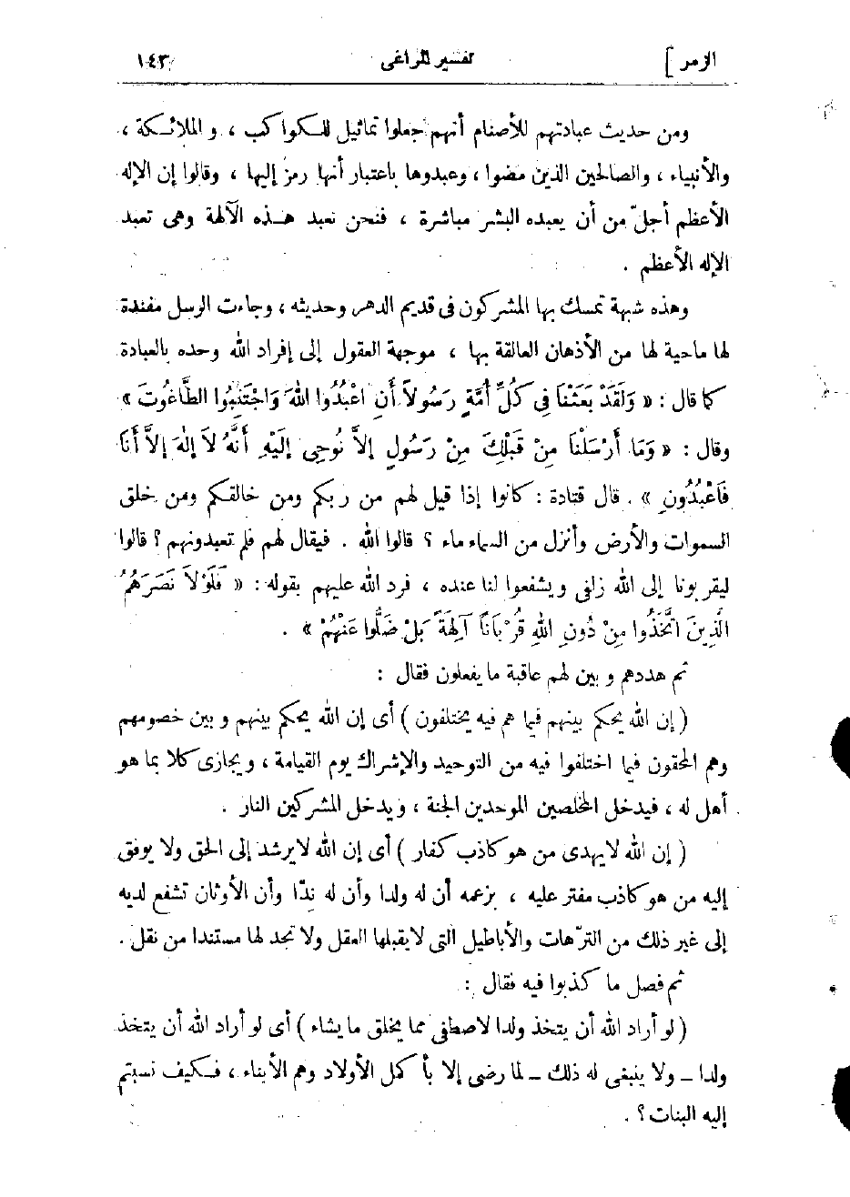وهذه شبهة تمسك بها المشركون في قديم الدهر وحديثه، وجاءت الرسل مفندة لها ماحية لها من الأذهان العالقة بها، موجهة العقول إلى إفراد الله وحده بالعبادة كما قال: «وَلَقَدْ بَعَثْنا فِي كُلِّ أُمَّةٍ رَسُولًا أَنِ اعْبُدُوا اللَّهَ وَاجْتَنِبُوا الطَّاغُوتَ» وقال: