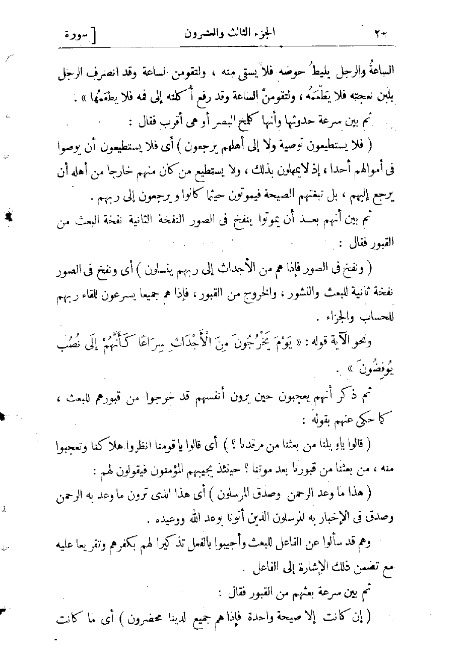 (فَلا يَسْتَطِيعُونَ تَوْصِيَةً وَلا إِلى أَهْلِهِمْ يَرْجِعُونَ) أي فلا يستطيعون أن يوصوا فى أموالهم أحدا، إذ لا يمهلون بذلك، ولا يستطيع من كان منهم خارجا من أهله أن يرجع إليهم، بل تبغتهم الصيحة فيموتون حيثما كانوا ويرجعون إلى ربهم.