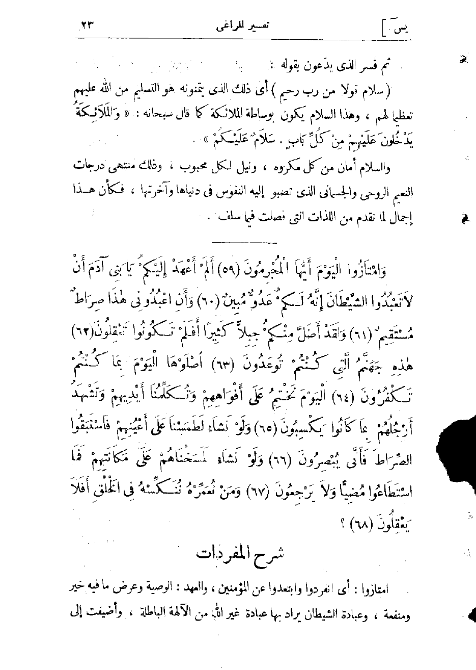 امتازوا: أي انفردوا وابتعدوا عن المؤمنين، والعهد: الوصية وعرض ما فيه خير ومنفعة، وعبادة الشيطان: يراد بها عبادة غير الله من الآلهة الباطلة، وأضيفت إلى