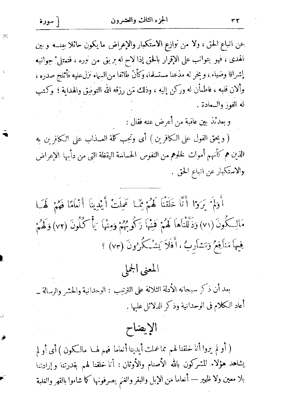 (أَوَلَمْ يَرَوْا أَنَّا خَلَقْنا لَهُمْ مِمَّا عَمِلَتْ أَيْدِينا أَنْعاماً فَهُمْ لَها مالِكُونَ) أي أو لم يشاهد هؤلاء المشركون بالله الأصنام والأوثان: أنا خلقنا لهم بقدرتنا وإرادتنا بلا معين ولا ظهير- أنعاما من الإبل والبقر والغنم يصرّفونها كما شاءوا بالقهر والغلبة