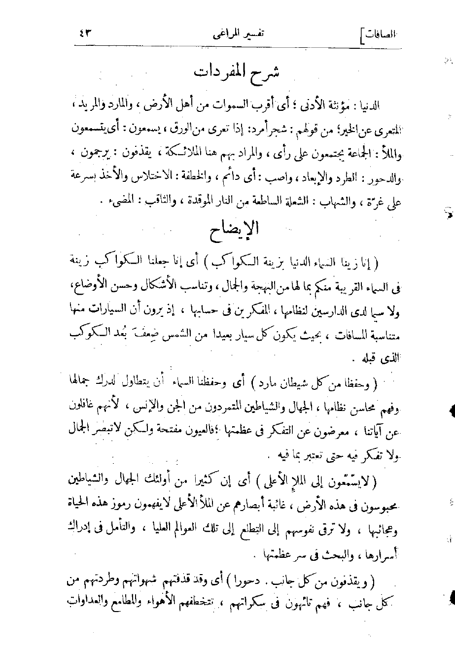 الدنيا: مؤنثة الأدنى أي أقرب السموات من أهل الأرض والمارد والمريد، المتعرى عن الخير من قولهم: شجر أمرد: إذا تعرى من الورق، يسمعون: أي يستمعون، والملأ: الجماعة يجتمعون على رأى، والمراد بهم هنا الملائكة، يقذفون: