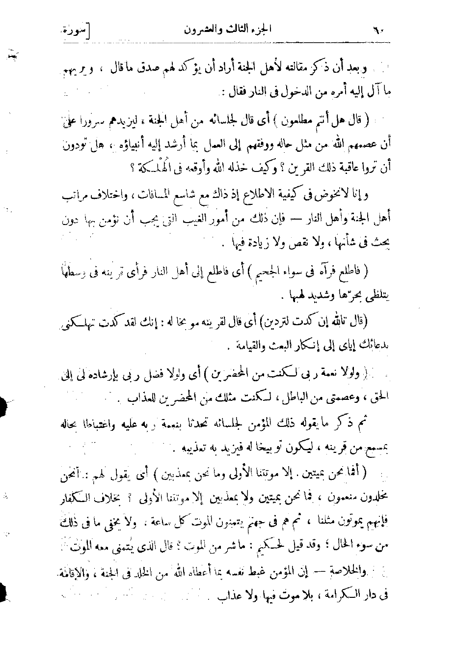 وإنا لا نخوض في كيفية الاطلاع إذ ذاك مع شاسع المسافات، واختلاف مراتب أهل الجنة وأهل النار- فإن ذلك من أمور الغيب التي يجب أن نؤمن بها دون بحث فى شأنها، ولا نقص ولا زيادة فيها.