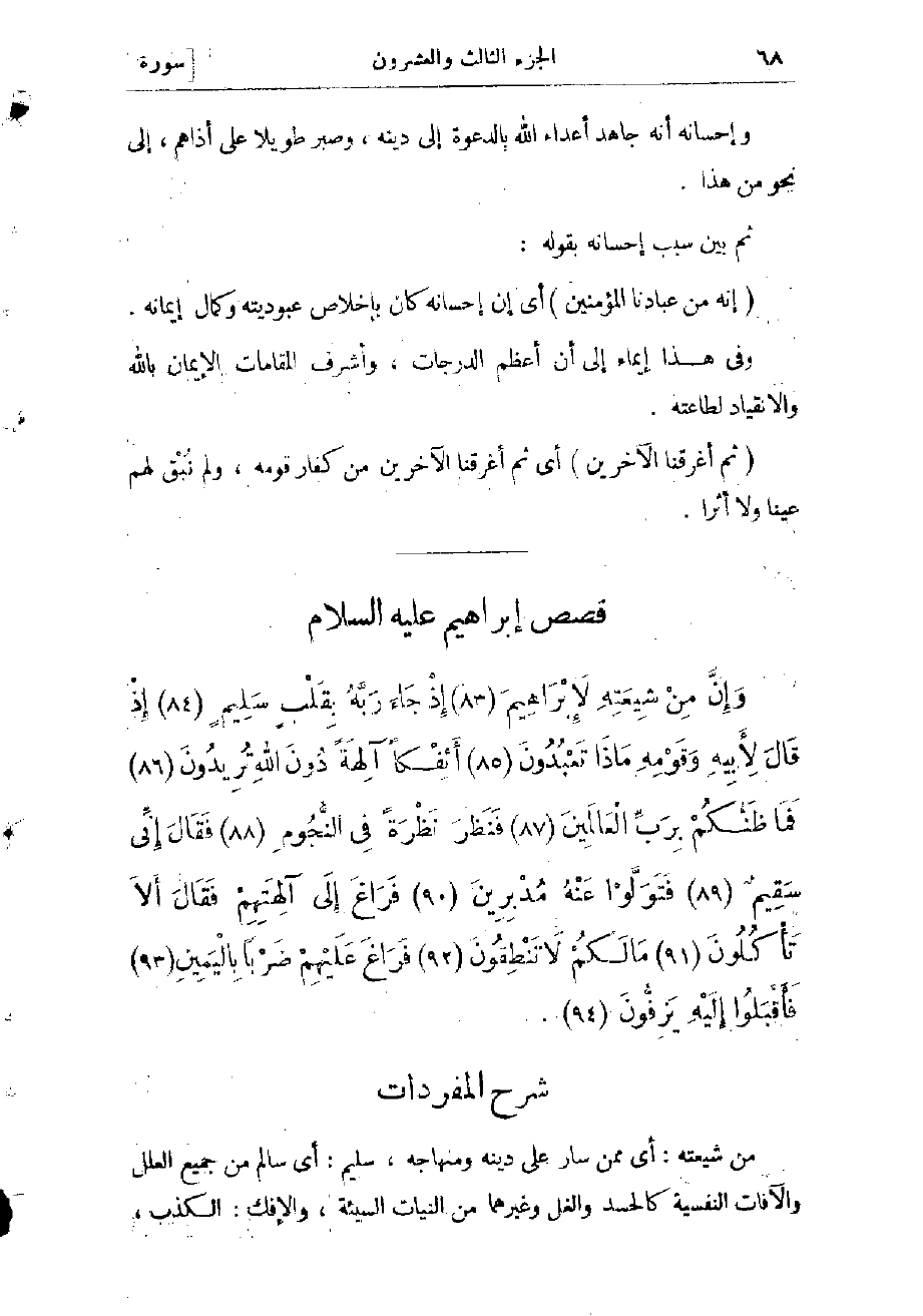من شيعته: أي ممن سار على دينه ومنهاجه، سليم: أي سالم من جميع العلل والآفات النفسية كالحسد والغل وغيرهما من النيات السيئة، والإفك: الكذب، سقيم: