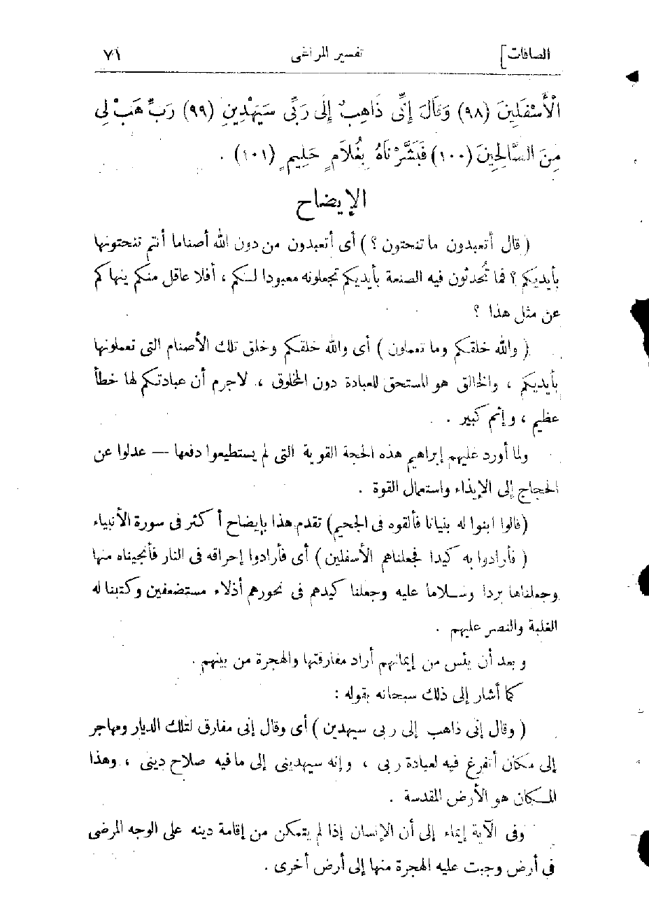 (وَقالَ إِنِّي ذاهِبٌ إِلى رَبِّي سَيَهْدِينِ) أي وقال إنى مفارق لتلك الديار، ومهاجر إلى مكان أتفرغ فيه لعبادة ربى، وإنه سيهدينى إلى ما فيه صلاح دينى، وهذا المكان هو الأرض المقدسة.