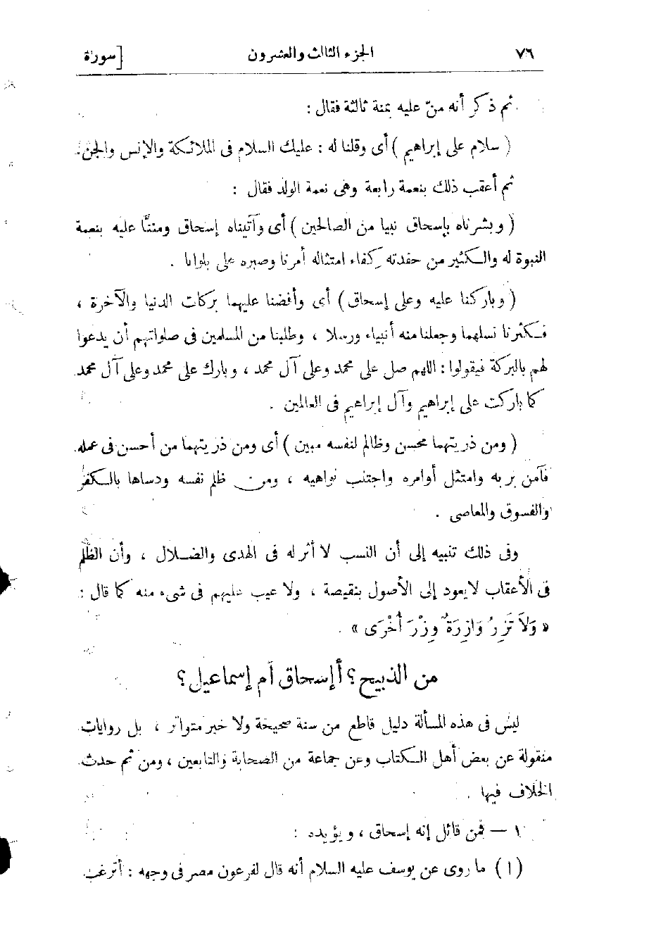 1- فمن قائل إنه إسحاق، ويؤيده: