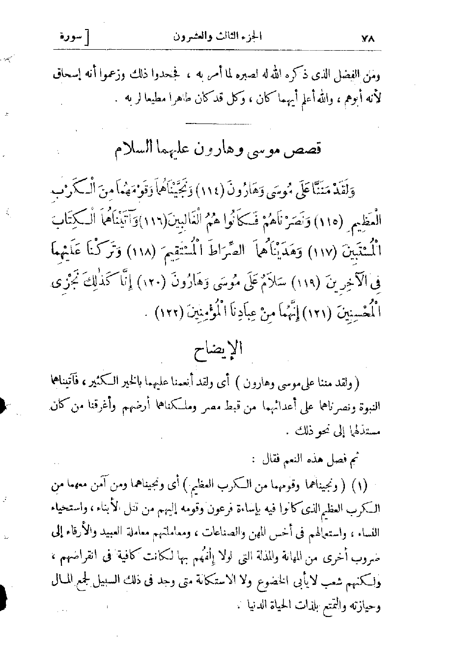(1) (وَنَجَّيْناهُما وَقَوْمَهُما مِنَ الْكَرْبِ الْعَظِيمِ) أي ونجيناهما ومن آمن معهما من الكرب العظيم الذي كانوا فيه بإساءة فرعون وقومه إليهم من قتل الأبناء، واستحياء النساء، واستعمالهم في أخس المهن والصناعات، ومعاملتهم معاملة العبيد والأرقاء إلى ضروب أخرى من المهانة والمذلة التي لولا إلفهم لها لكانت كافية في انقراضهم، ولكنهم شعب لا يأبى الخضوع والاستكانة متى وجد في ذلك السبيل لجمع المال وحيازته، والتمتع بلذات الحياة الدنيا.