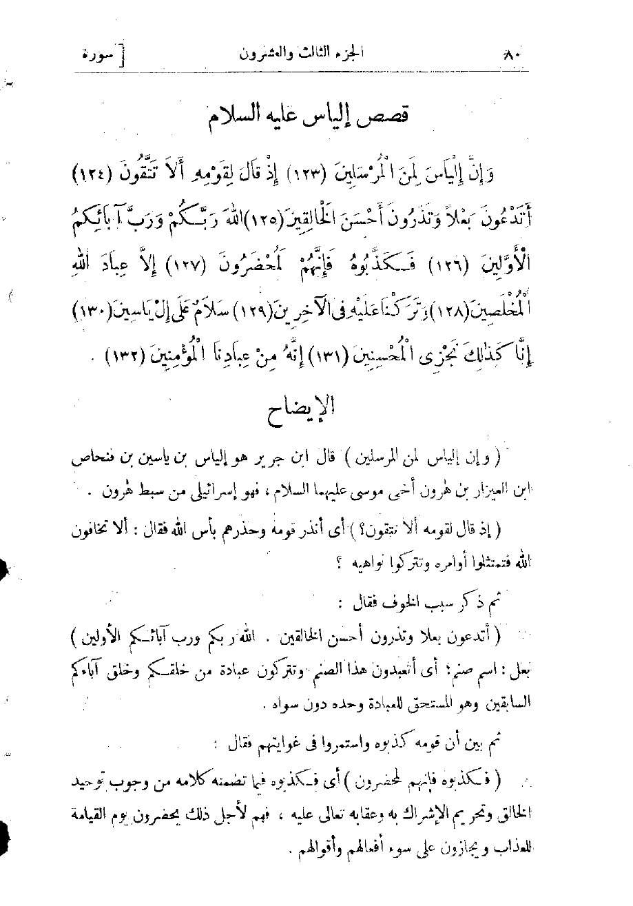 (وَإِنَّ إِلْياسَ لَمِنَ الْمُرْسَلِينَ) قال ابن جرير: هو إلياس بن ياسين بن فنحاص ابن العيزار بن هرون أخى موسى عليهما السلام، فهو إسرائيلى من سبط هرون.