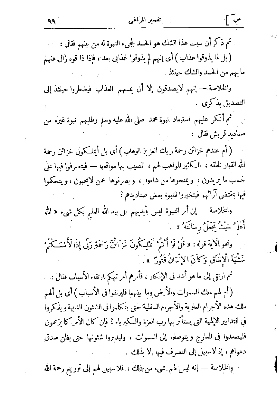 (أَمْ عِنْدَهُمْ خَزائِنُ رَحْمَةِ رَبِّكَ الْعَزِيزِ الْوَهَّابِ) أي بل أيملكون خزائن رحمة الله القهار لخلقه، الكثير المواهب لهم، المصيب بها مواقعها- فيتصرفوا فيها بحسب ما يريدون، ويمنحوها من يشاءون، ويصرفوها عمن لا يحبون، ويتحكموا فيها بمقتضى آرائهم، فيتخيروا للنبوة بعض صناديدهم؟