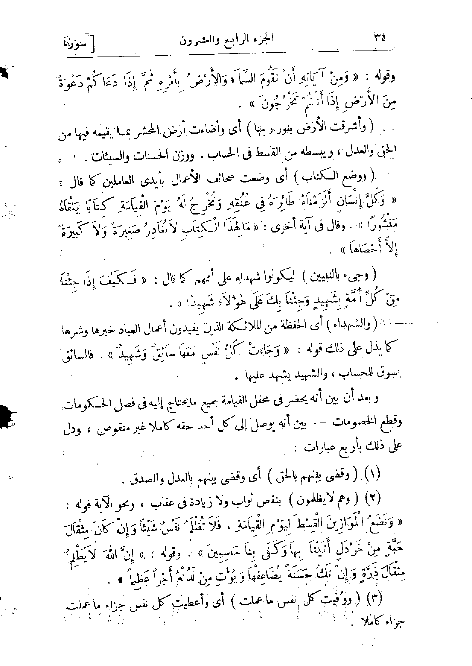 وبعد أن بيّن أنه يحضر في محفل القيامة جميع ما يحتاج إليه في فصل الحكومات وقطع الخصومات- بين أنه يوصل إلى كل أحد حقه كاملا غير منقوص، ودل على ذلك بأربع عبارات: