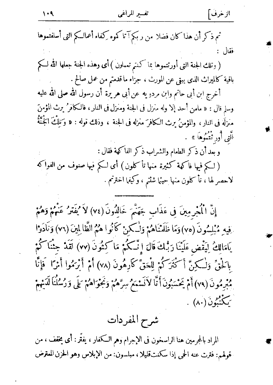 المراد بالمجرمين هنا الراسخون فى الإجرام وهم الكفار، يفتّر: أي يخفف، من قولهم: فترت عنه الحمى إذا سكنت قليلا، مبلسون: من الإبلاس وهو الحزن المعترض