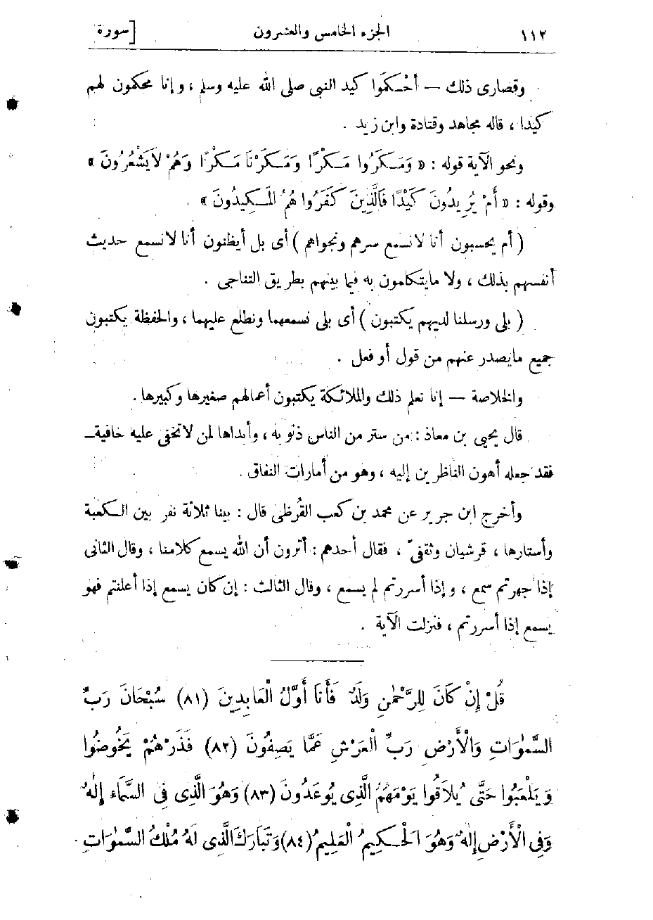 وأخرج ابن جرير عن محمد بن كعب القرظي قال: بينا ثلاثة نفر بين الكعبة وأستارها، قرشيان وثقفىّ، فقال أحدهم: أترون أن الله يسمع كلامنا، وقال الثاني: إذا جهرتم سمع، وإذا أسررتم لم يسمع، وقال الثالث: إن كان يسمع إذا أعلنتم فهو يسمع إذا أسررتم، فنزلت الآية.