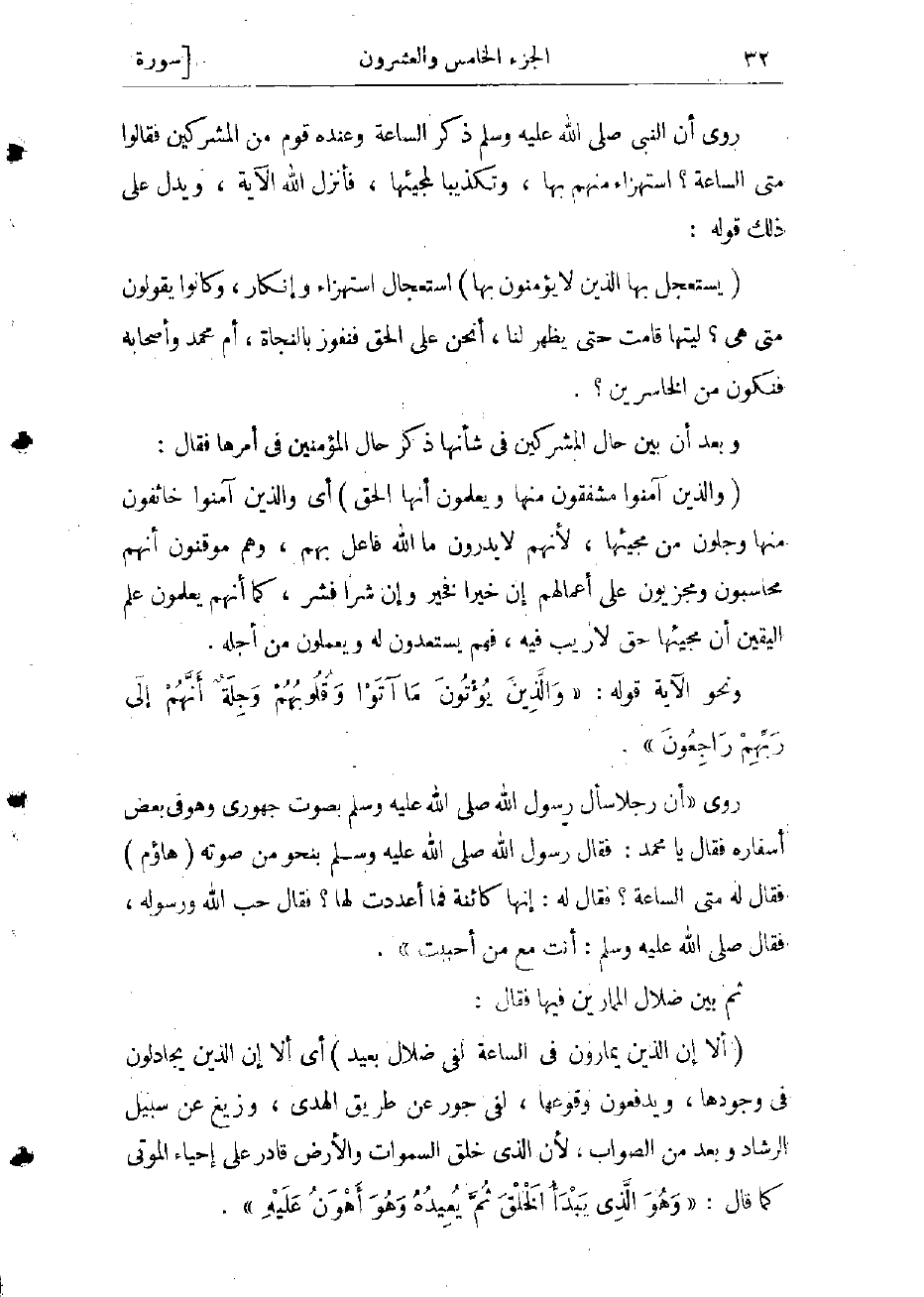 (يَسْتَعْجِلُ بِهَا الَّذِينَ لا يُؤْمِنُونَ بِها) استعجال استهزاء وإنكار، وكانوا يقولون متى هى؟ ليتها قامت حتى يظهر لنا، أنحن على الحق فنفوز بالنجاة، أم محمد وأصحابه فنكون من الخاسرين؟