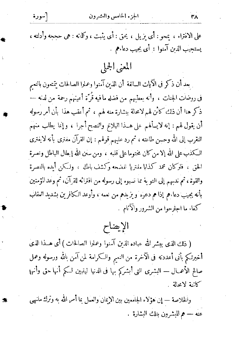 إنه لا يسألهم على هذا البلاغ والنصح أجرا، وإنما يطلب منهم التقرب إلى الله وحسن طاعته، ثم رد عليهم قولهم: إن القرآن مفترى بأنه لا يفترى الكذب على الله إلا من كان مختوما على قلبه، ومن سنن الله إبطال الباطل ونصرة الحق، فلو كان محمد كذابا مفتريا لفضحه وكشف باطله، ولكن أيده بالنصر والقوة، ثم ندبهم إلى التوبة مما نسبوه إلى رسوله من افترائه للقرآن، ثم وعد المؤمنين بأنه يجيب دعاءهم إذا هم دعوه، ويزيدهم من نعمه، وأوعد الكافرين بشديد العقاب كفاء ما اجترحوا من الشرور والآثام.