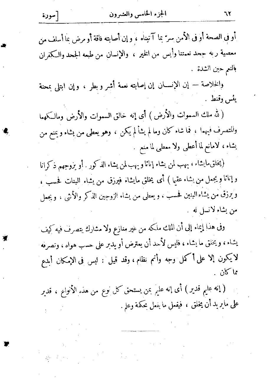(يَخْلُقُ ما يَشاءُ، يَهَبُ لِمَنْ يَشاءُ إِناثاً وَيَهَبُ لِمَنْ يَشاءُ الذُّكُورَ. أَوْ يُزَوِّجُهُمْ ذُكْراناً وَإِناثاً وَيَجْعَلُ مَنْ يَشاءُ عَقِيماً) أي يخلق ما يشاء فيرزق من يشاء البنات فحسب، ويرزق من يشاء البنين فحسب، ويعطى من يشاء الزوجين الذكر والأنثى، ويجعل من يشاء لا نسل له.