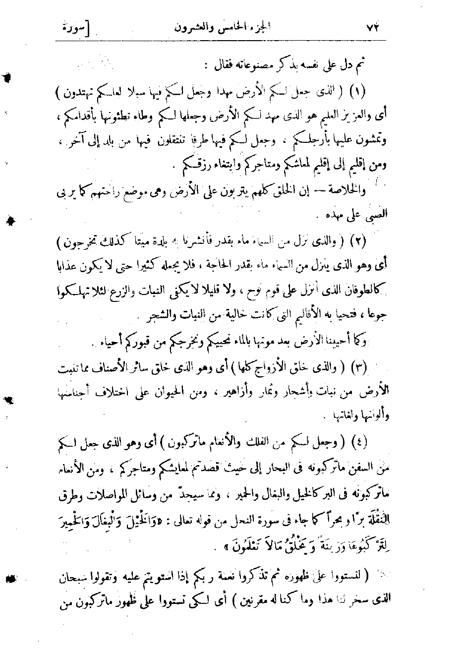 (1) (الَّذِي جَعَلَ لَكُمُ الْأَرْضَ مَهْداً وَجَعَلَ لَكُمْ فِيها سُبُلًا لَعَلَّكُمْ تَهْتَدُونَ) أي والعزيز العليم هو الذي مهد لكم الأرض وجعلها لكم وطاء تطئونها بأقدامكم، وتمشون عليها بأرجلكم، وجعل لكم فيها طرقا تنتقلون فيها من بلد إلى آخر، ومن إقليم إلى إقليم لمعاشكم ومتاجركم وابتغاء رزقكم.