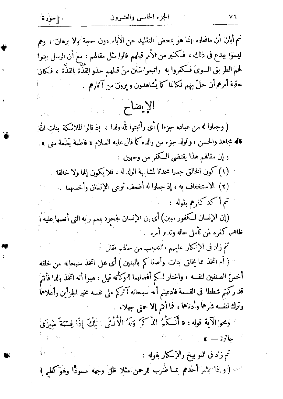 ونحو الآية قوله: «أَلَكُمُ الذَّكَرُ وَلَهُ الْأُنْثى. تِلْكَ إِذاً قِسْمَةٌ ضِيزى» - جائرة-.