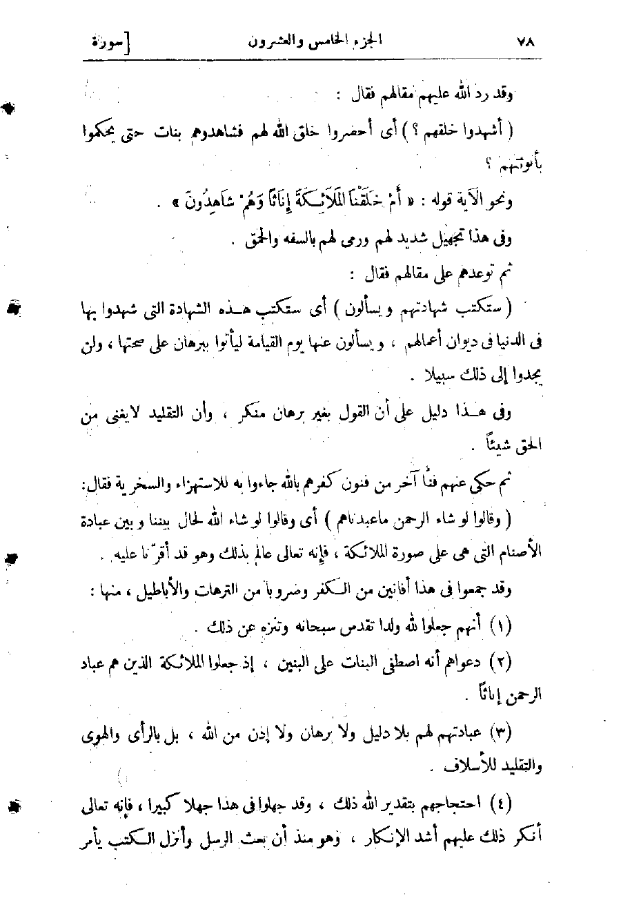 (4) احتجاجهم بتقدير الله ذلك، وقد جهلوا فى هذا جهلا كبيرا، فإنه تعالى أنكر ذلك عليهم أشد الإنكار، وهو منذ أن بعث الرسل وأنزل الكتب يأمر بعبادته