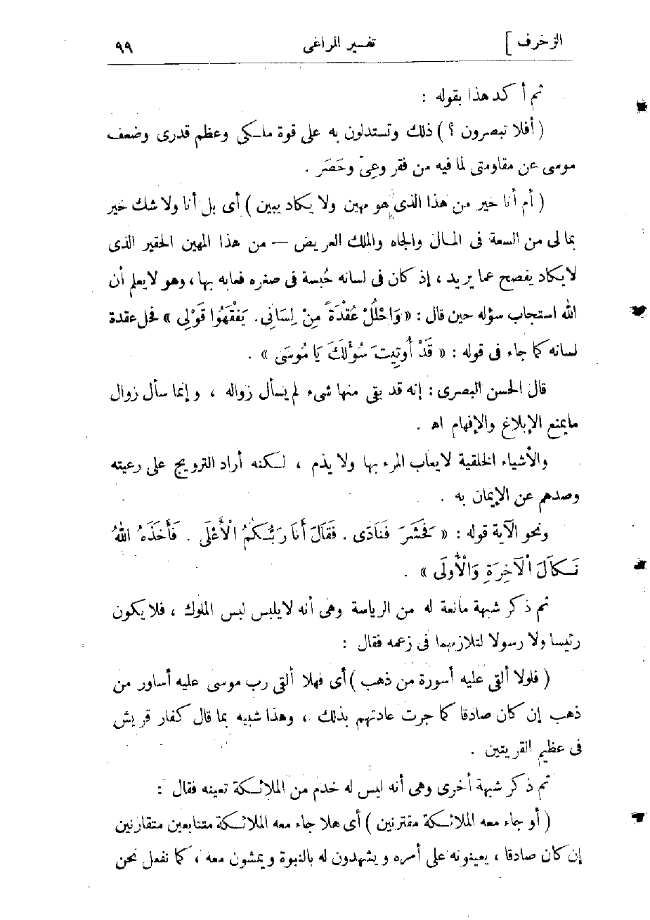 (أَمْ أَنَا خَيْرٌ مِنْ هذَا الَّذِي هُوَ مَهِينٌ وَلا يَكادُ يُبِينُ) أي بل أنا ولا شك خير بما لى من السعة فى المال والجاه والملك العريض- من هذا المهين الحقير الذي لا يكاد يفصح عما يريد، إذ كان فى لسانه حبسة فى صغره فعابه بها، وهو لا يعلم أن الله استجاب سؤله حين قال: «وَاحْلُلْ عُقْدَةً مِنْ لِسانِي يَفْقَهُوا قَوْلِي» فحل عقدة لسانه كما جاء فى قوله: «قَدْ أُوتِيتَ سُؤْلَكَ يا مُوسى» .