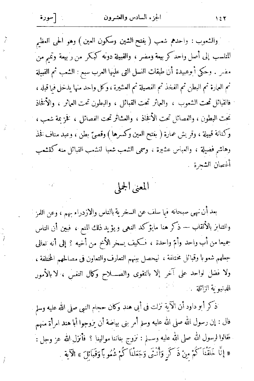 «إِنَّا خَلَقْناكُمْ مِنْ ذَكَرٍ وَأُنْثى وَجَعَلْناكُمْ شُعُوباً وَقَبائِلَ» الآية.