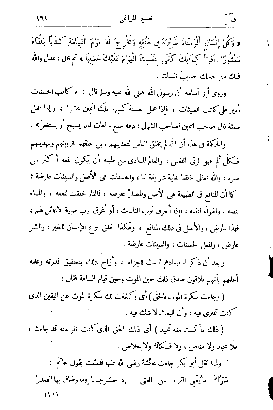 معك فى قبرك حتى تخرج يوم القيامة، فعند ذلك يقول الله تعالى: «وَكُلَّ إِنسانٍ أَلْزَمْناهُ طائِرَهُ فِي عُنُقِهِ وَنُخْرِجُ لَهُ يَوْمَ الْقِيامَةِ كِتاباً يَلْقاهُ مَنْشُوراً. اقْرَأْ كِتابَكَ كَفى بِنَفْسِكَ الْيَوْمَ عَلَيْكَ حَسِيباً» ثم قال: عدل والله فيك من جعلك حسيب نفسك.
