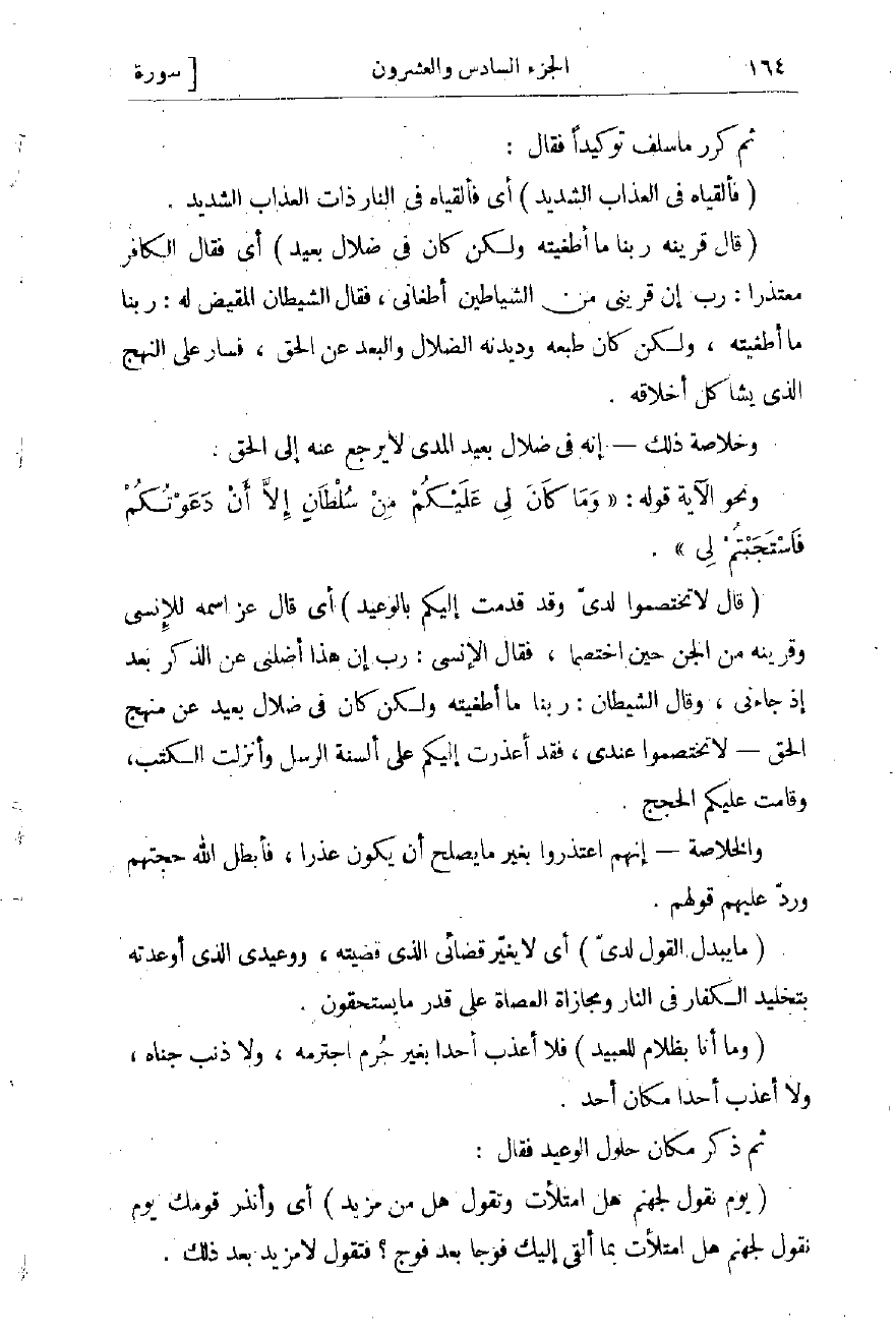 رب إن قرينى من الشياطين أطغانى، فقال الشيطان المقيّض له: ربنا ما أطغيته، ولكن كان طبعه وديدنه الضلال والبعد عن الحق، فسار على النهج الذي يشاكل أخلاقه.