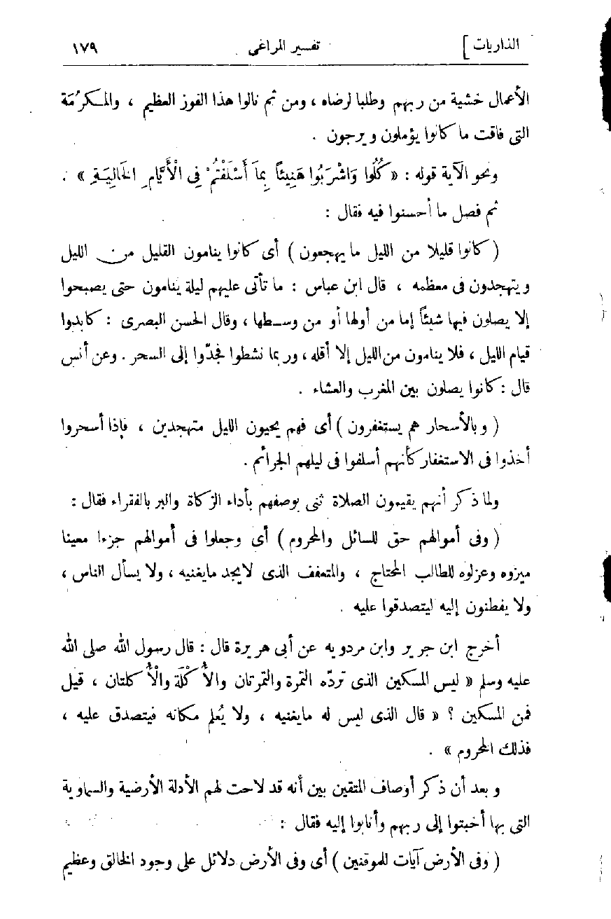 (وَفِي أَمْوالِهِمْ حَقٌّ لِلسَّائِلِ وَالْمَحْرُومِ) أي وجعلوا فى أموالهم جزءا معينا ميزوه وعزلوه للطالب المحتاج، والمتعفف الذي لا يجد ما يغنيه، ولا يسأل الناس، ولا يفطنون إليه ليتصدقوا عليه.