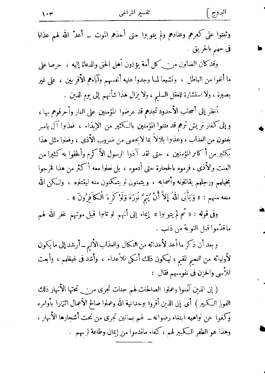 أنظر إلى أصحاب الأخدود تجدهم قد عرضوا المؤمنين على النار وأحرقوهم بها، وإلى كفار قريش ترهم قد فتنوا المؤمنين بالكثير من الإيذاء، فعذبوا آل ياسر بفنون من العذاب، وعذبوا بلالا بما لا يحصى من ضروب الأذى، وفعلوا مثل هذا بكثير من أكابر المؤمنين، حتى لقد آذوا الرسول الأكرم وألحقوا به كثيرا من العنت والأذى، فرموه بالحجارة حتى أدموه، بل فعلوا معه أكثر من هذا فخرجوا بخيلهم ورجلهم يقاتلونه وأصحابه، ويتمنون لو يتمكنون منه ليقتلوه، ولكن الله منعه منهم: