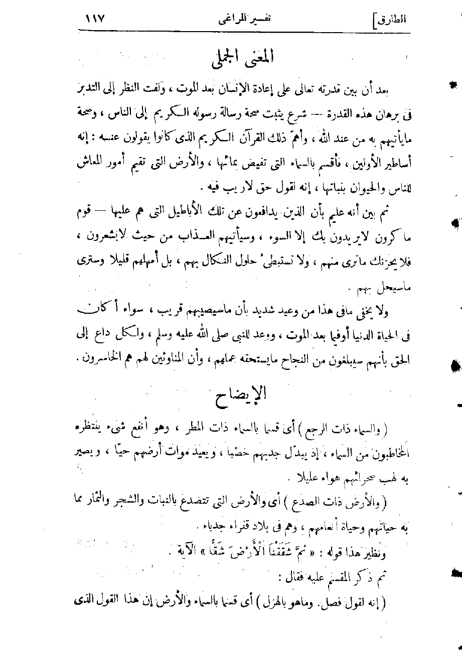 بعد أن بين قدرته تعالى على إعادة الإنسان بعد الموت، ولفت النظر إلى التدبر فى برهان هذه القدرة- شرع يثبت صحة رسالة رسوله الكريم إلى الناس، وصحة ما يأتيهم به من عند الله، وأهمّ ذلك القرآن الكريم الذي كانوا يقولون عنه: إنه أساطير الأولين، فأقسم بالسماء التي تفيض بمائها، والأرض التي تقيم أمور المعاش للناس والحيوان بنباتها، إنه لقول حق لا ريب فيه.