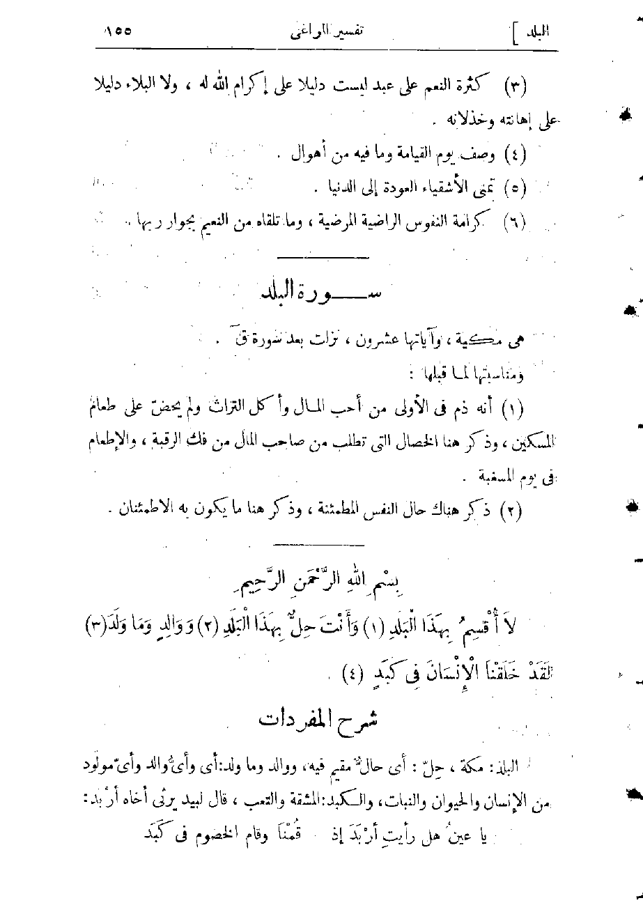 البلد: مكة، حلّ: أي حالّ مقيم فيه، ووالد وما ولد: أي وأىّ والد وأىّ مولود من الإنسان والحيوان والنبات، والكبد: المشقة والتعب، قال لبيد يرثى أخاه أربد: