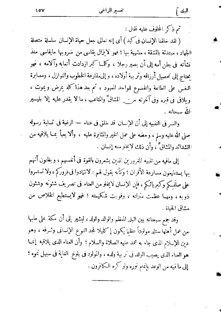 إلى ما فيه من تنبيه المغرورين الذين يشعرون بالقوة فى أنفسهم، ويظنون أنهم بها يستطيعون مصارعة الأقران، وكأنه يقول لهم: لا تتمادوا فى غروركم، ولا تستمروا على صلفكم وكبريائكم، فإن الإنسان لا يخلو من العناء فى تصريف شئونه وشئون ذويه، ومهما عظمت منزلته، وقويت شكيمته. فهو لا يستطيع الخلاص من مشاقّ الحياة.