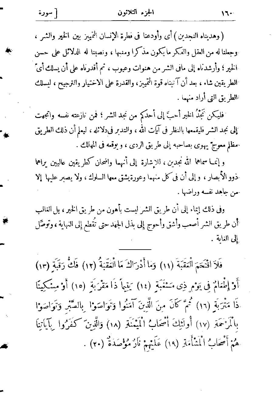 وإنما سماهما الله نجدين، للإشارة إلى أنهما واضحان كطريقين عاليين يراهما ذوو الأبصار، وإلى أن فى كل منهما وعورة يشق معها السلوك، ولا يصبر عليها إلا من جاهد نفسه وراضها.