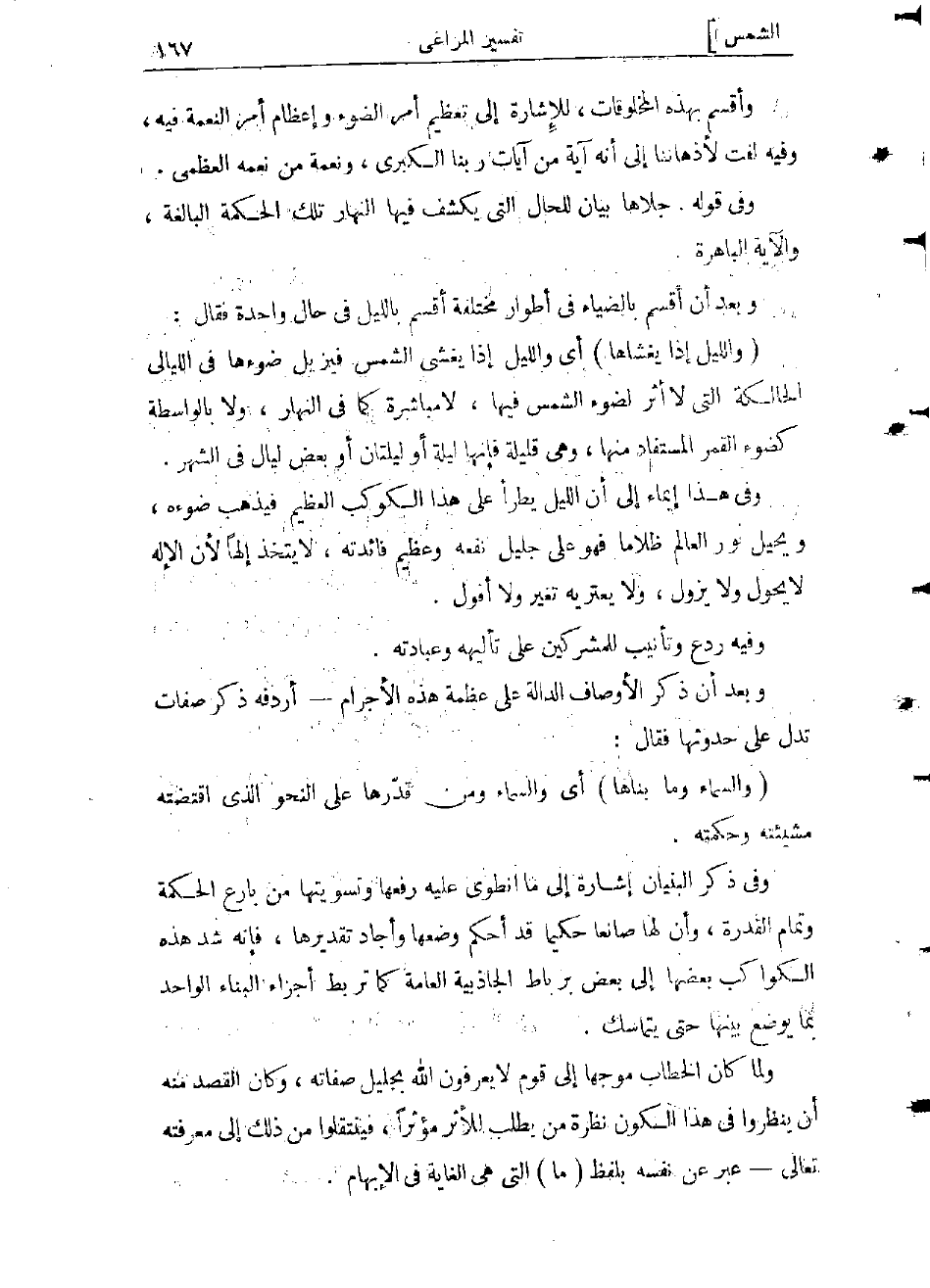 وأقسم بهذه المخلوقات، للإشارة إلى تعظيم أمر الضوء وإعظام أمر النعمة فيه، وفيه لفت لأذهاننا إلى أنه آية من آيات ربنا الكبرى، ونعمة من نعمه العظمى.