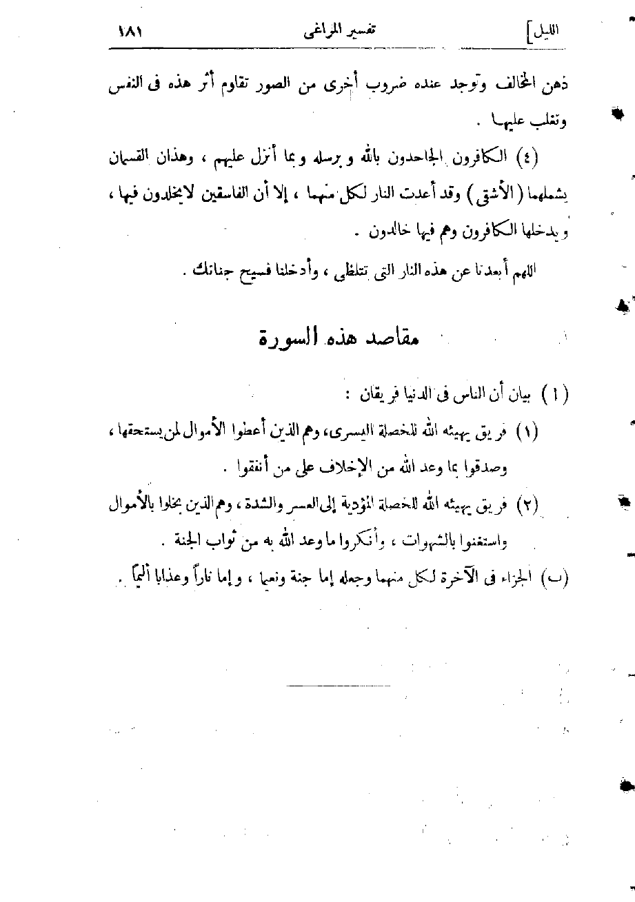 (4) الكافرون الجاحدون بالله وبرسله وبما أنزل عليهم، وهذان القسمان يشملهما (الْأَشْقَى) وقد أعدت النار لكل منهما، إلا أن الفاسقين لا يخلدون فيها، ويدخلها الكافرون وهم فيها خالدون.