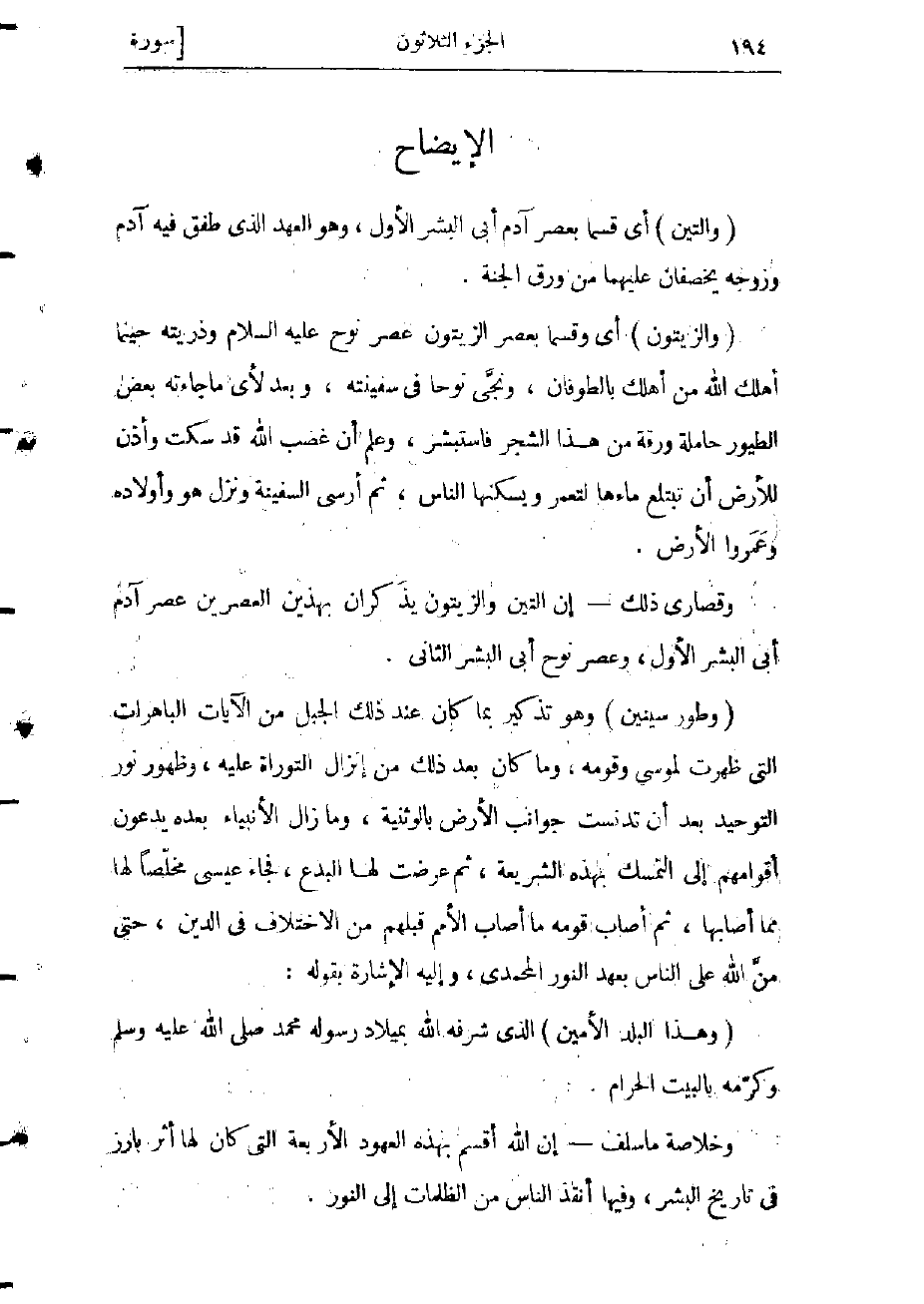 وقصارى ذلك- إن التين والزيتون يذكّران بهذين العصرين عصر آدم أبى البشر الأول، وعصر نوح أبى البشر الثاني.