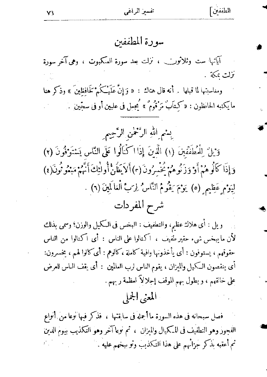 فصل سبحانه فى هذه السورة ما أجمله فى سابقتها، فذكر فيها نوعا من أنواع الفجور وهو التطفيف فى المكيال والميزان، ثم نوعا آخر وهو التكذيب بيوم الدين ثم أعقبه بذكر جزائهم على هذا التكذيب وتوبيخهم عليه.