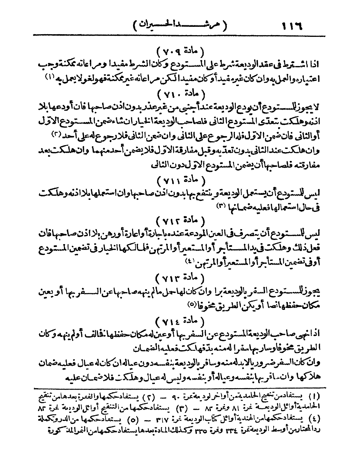 ليس للمستودع أن يتصرف في العين المودعة عنده بإجارة أو إعارة أو رهن بلا إذن صاحبها فإن فعل ذلك وهلكت في يد المستأجر أو المستعير أو المرتهن فلمالكها الخيار في تضمين المستودع أو في تضمين المستأجر أو المستعير أو المرتهن.