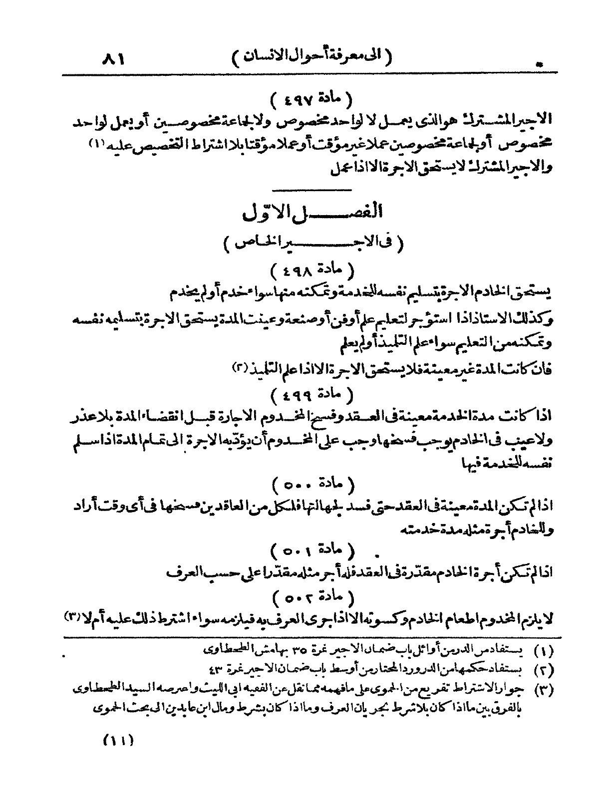إذا كانت مدة الخدمة معينة في العقد وفسخ المخدوم الإجارة قبل انقضاء المدة بلا عذر ولا عيب في الخادم يوجب فسخها وجب على المخدوم أن يؤديه الأجرة إلى تمام المدة إذا سلم نفسه للخدمة فيها.