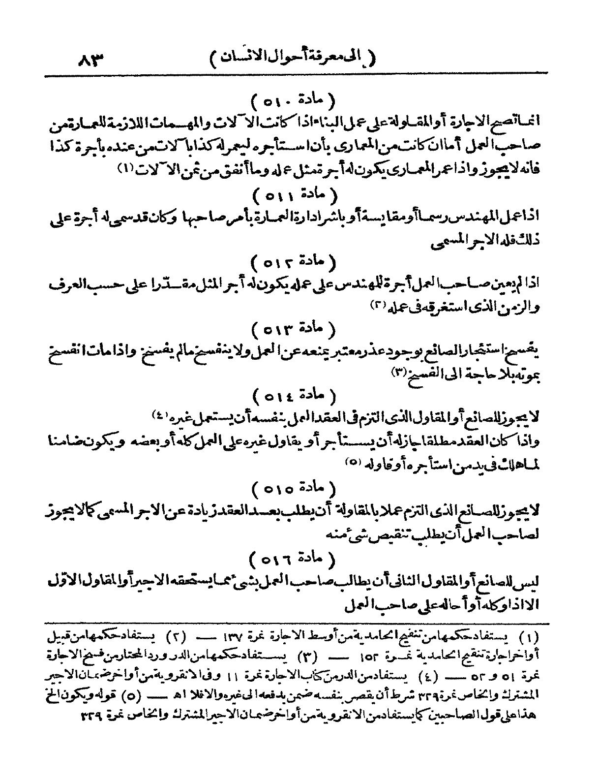 إنما تصح الإجارة أو المقاولة على عمل البناء إذا كانت الآلات والمهمات اللازمة للعمارة من صاحب العمل أما إن كانت من المعماري بأن استأجره ليعمر له كذا بآلات من عنده بأجرة كذا فإنه لا يجوز وإذا عمر المعماري يكون له أجرة مثل عمله وما أنفق من ثمن الآلات.