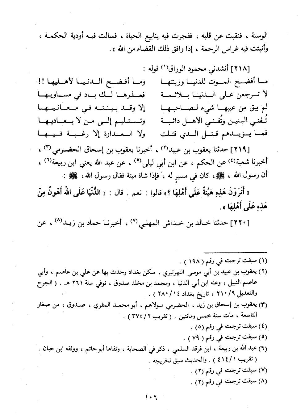 218 - أنشدني محمود الوراق قوله: ما أفضح الموت للدنيا وزينتها ... وما أفضح الدنيا لأهليها!!