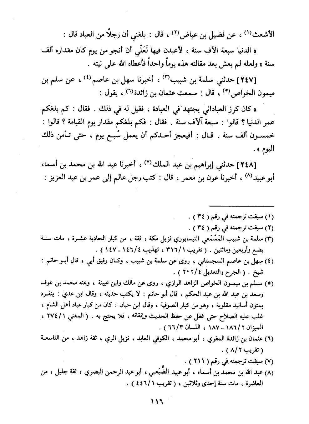 247 - حدثني سلمة بن شبيب، أخبرنا سهل بن عاصم، عن سلم بن ميمون الخواص، قال: سمعت عثمان بن زائدة، يقول: كان كرز العباداني يجتهد في العبادة، فقيل له في ذلك.