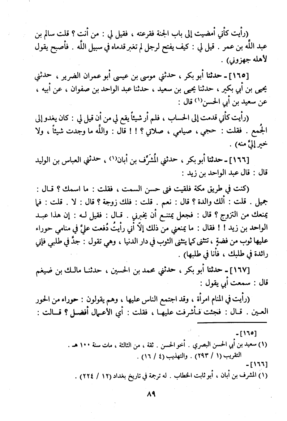 165 - حَدَّثَنَا أَبُو بَكْرٍ، ثني مُوسَى بْنُ عِيسَى أَبُو عِمْرَانَ الضَّرِيرُ، ثني يَحْيَى بْنُ أَبِي بُكَيْرٍ، نا يَحْيَى بْنُ سَعِيدٍ، نا عَبْدُ الْوَاحِدِ بْنُ صَفْوَانَ، عَنْ أَبِيهِ، عَنْ سَعِيدِ بْنِ أَبِي الْحَسَنِ، قَالَ: " رَأَيْتُ §كَأَنِّي قَدِمْتُ إِلَى الْحِسَابِ فَلَمْ أَرَ شَيْئًا يَقَعُ لِي مِنْ أَنْ قِيلَ لِي كَانَ يَغْدُو إِلَى الْجُمَعِ فَقُلْتُ: حَجِّي صِيَامِي صَلَاتِي , قَالَ: وَاللَّهِ مَا وَجَدْتُ شَيْئًا وَلَا خَيْرَ إِلَيَّ مِنْهُ "