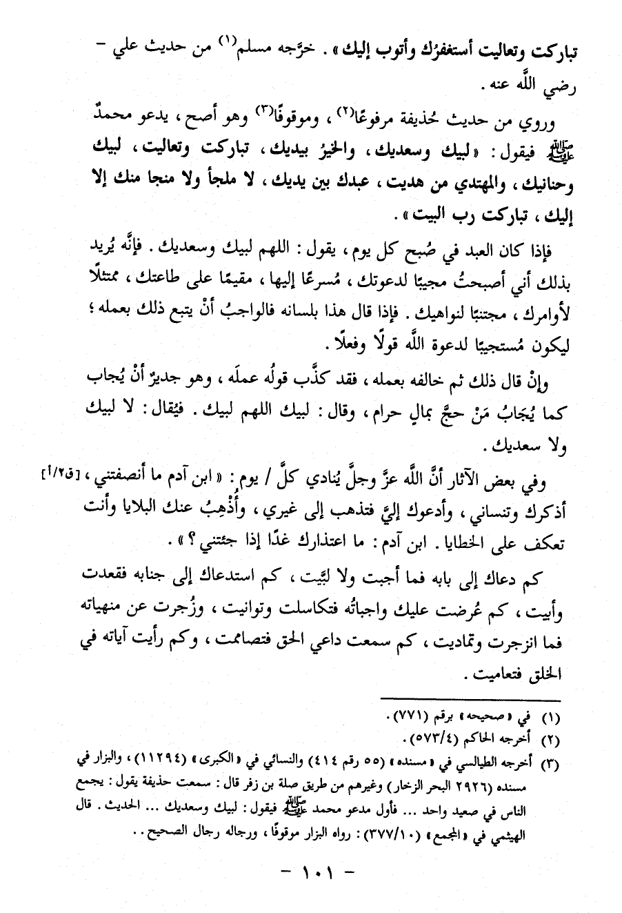 كم دعاك إِلَى بابه فما أجبت ولا لبَّيت، كم استدعاك إِلَى جنابه فقعدت وأبيت، كم عُرضت عليك واجباتُه فتكاسلت وتوانيت، وزُجرت عن منهياته فما انزجرت وتماديت، كم سمعت داعي الحق فتصاممت، وكم رأيت آياته في الخلق فتعاميت.