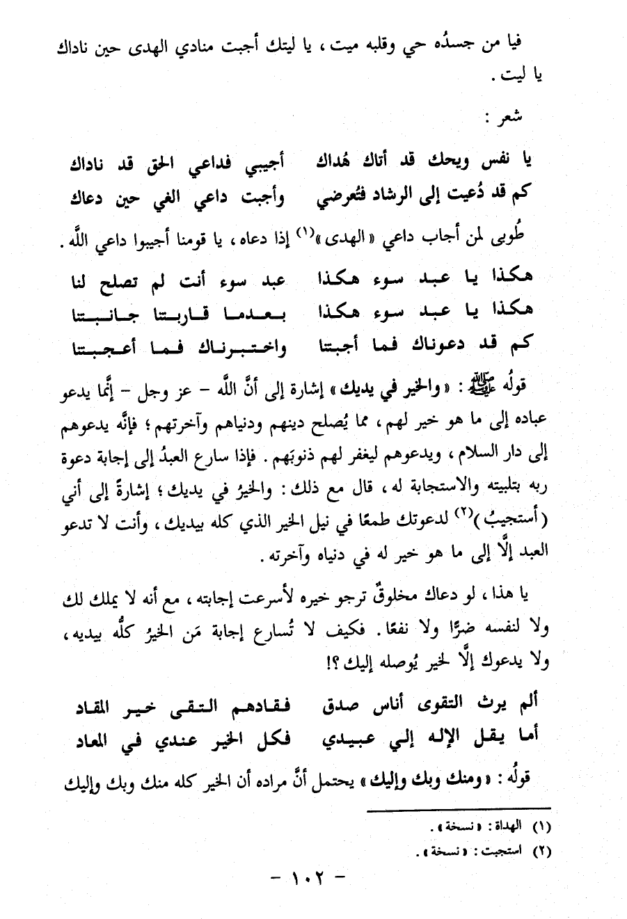 فيا من جسدُه حي وقلبه ميت، يا ليتك أجبت منادي الهدى حين ناداك يا ليت.