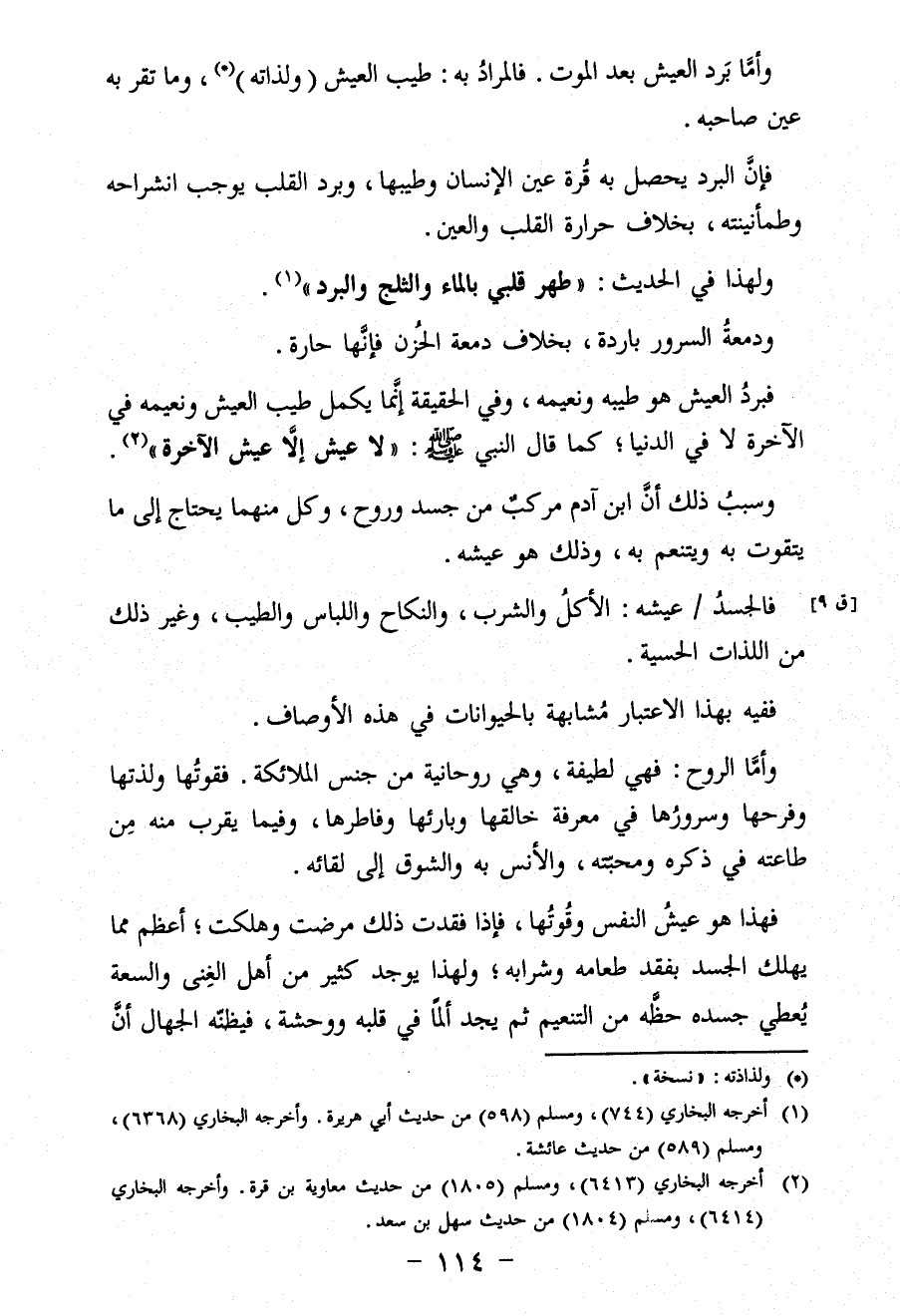 فالجسدُ عيشه: الأكلُ والشرب، والنكاح واللباس والطيب، وغير ذلك من اللذات الحسية.