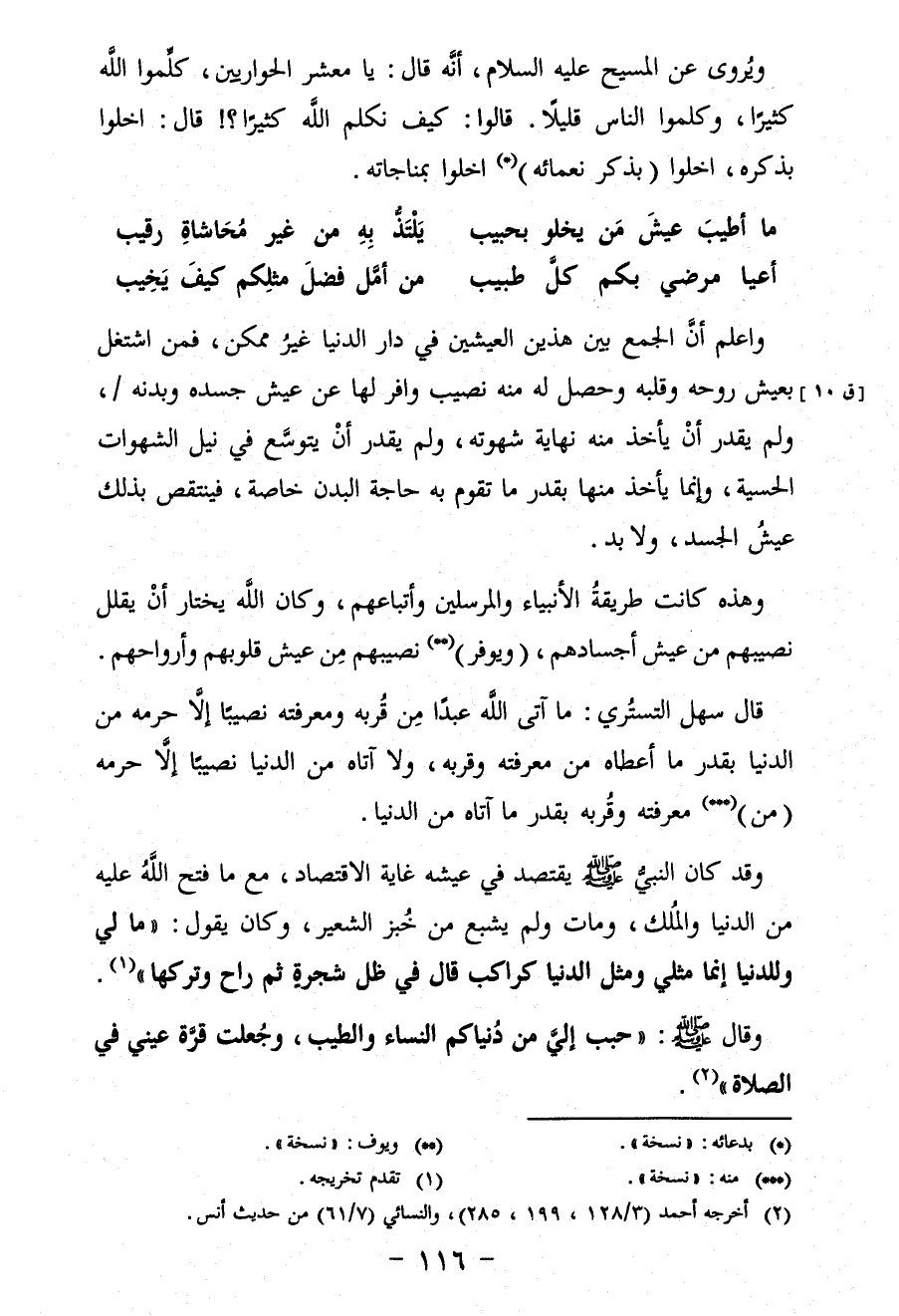 ويُروى عن المسيح عليه السلام، أنَّه قال: يا معشر الحواريين، كلِّموا الله كثيرًا، وكلموا الناس قليلًا. قالوا: كيف نكلم اللَّه كثيرًا؟! قال: اخلوا بذكره، اخلوا (بذكر نعمائه) (*) اخلوا بمناجاته.