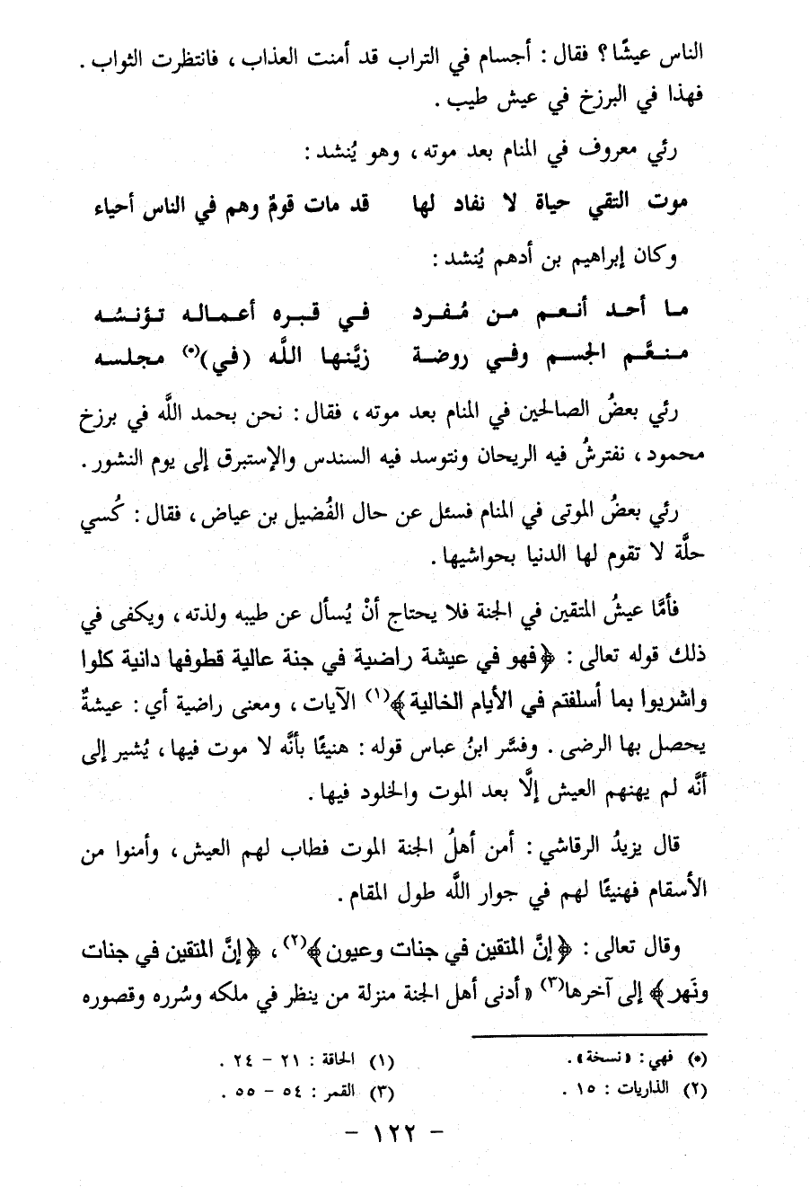 رئي بعضُ الصالحين في المنام بعد موته، فَقَالَ: نحن بحمد الله في برزخ محمود، نفترشُ فيه الريحان ونتوسد فيه السندس والإستبرق إِلَى يوم النشور.