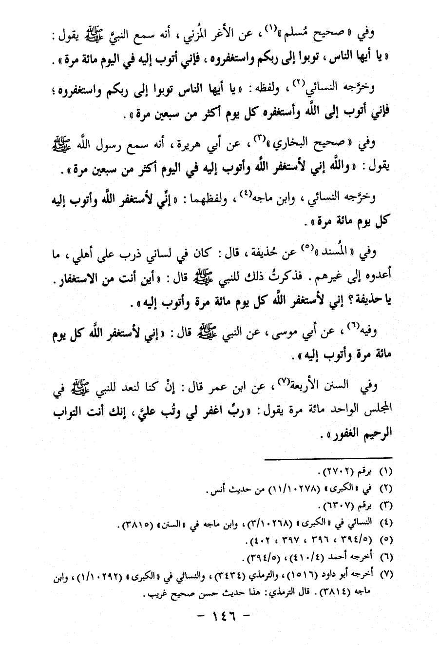 وفي "السنن الأربعة" (¬7)، عن ابن عمر قال: إِنْ كنا لنعد للنبي -صلى الله عليه وسلم- فى المجلس الواحد مائة مرة يقول: (ربِّ اغفر لي وتُب عليَّ، إنك أنت التواب الرحيم الغفور".