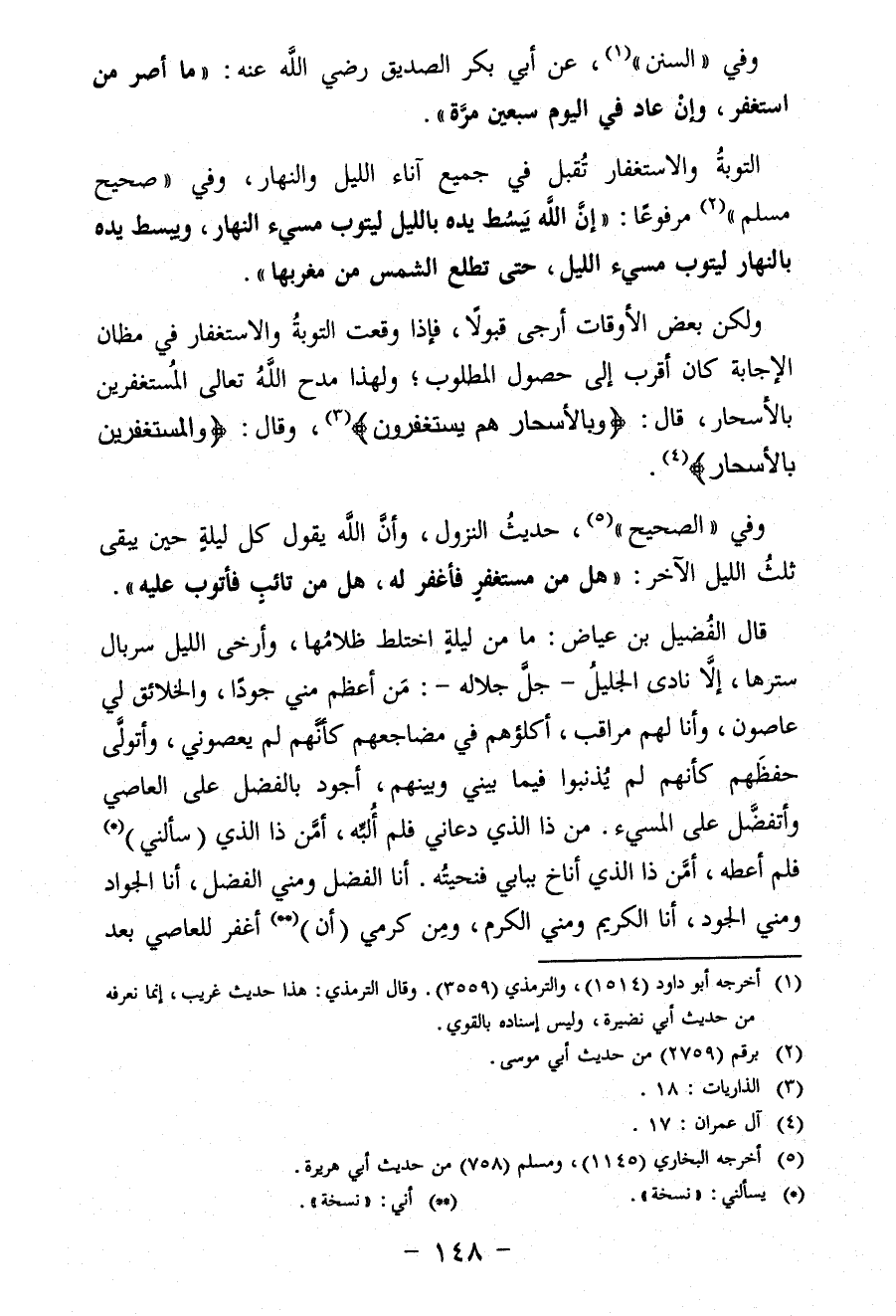 التوبةُ والاستغفار تُقبل في جميع آناء الليل والنهار، وفي "صحيح مسلم" (¬2) مرفوعًا: «إِنَّ اللهَ يَبْسُطُ يَدَهُ بِاللَّيْلِ لِيَتُوبَ مُسِيءُ النَّهَارِ، وَيَبْسُطُ يَدَهُ بِالنَّهَارِ لِيَتُوبَ مُسِيءُ اللَّيْلِ، حَتَّى تَطْلُعَ الشَّمْسُ مِنْ مَغْرِبِهَا».