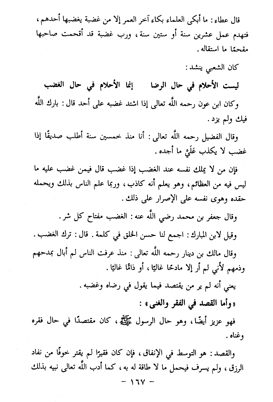قال عطاء: ما أبكى العُلَمَاء بكاء آخر العمر إلا من غضبة يغضبها أحدهم، فتهدم عمل عشرين سنة أو ستين سنة، ورب غضبة قد أقحمت صاحبها مقحمًا ما استقاله.