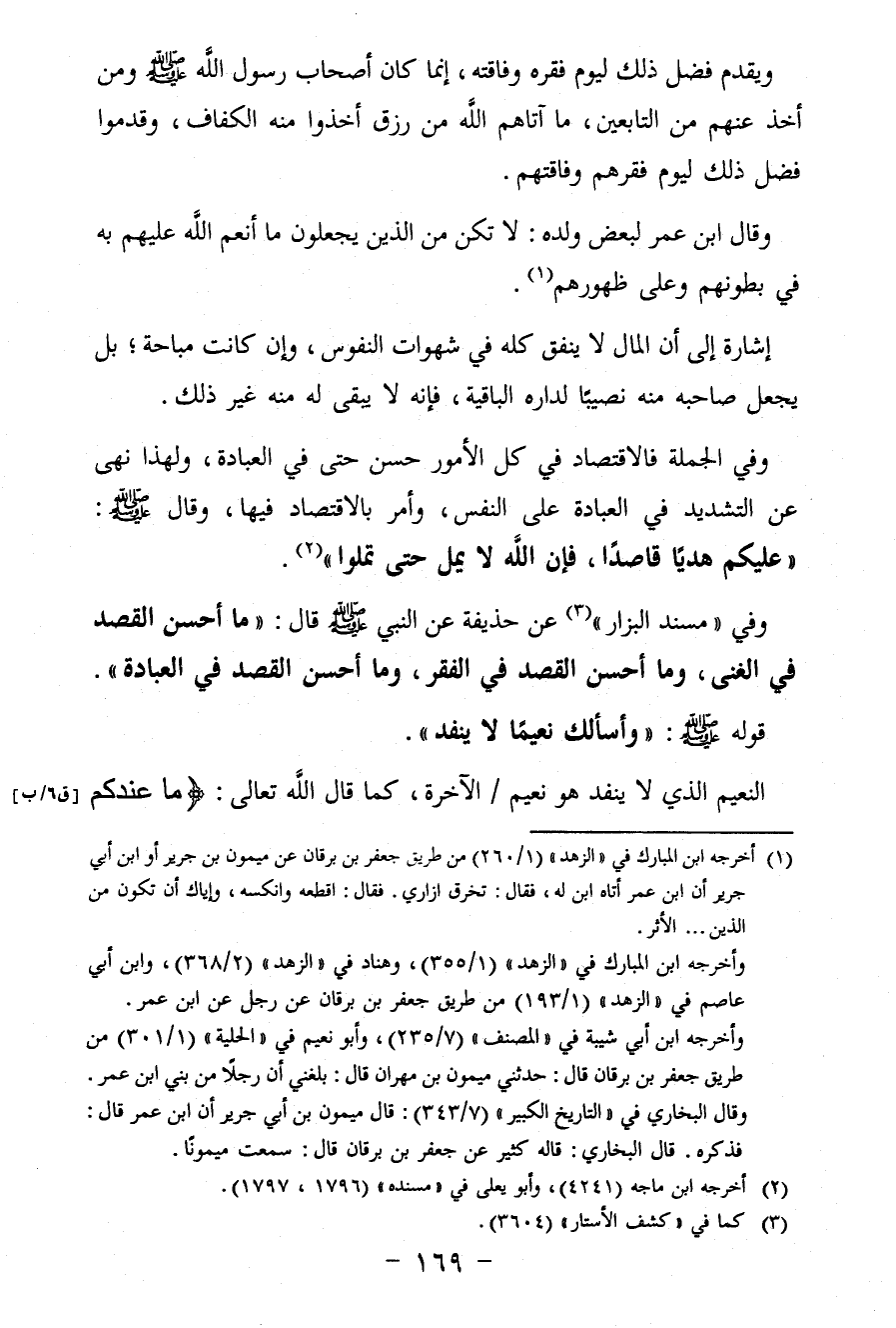 وفي الجملة فالاقتصاد في كل الأمور حسن حتى في العبادة، ولهذا نهى عن التشديد في العبادة عَلَى النفس، وأمر بالاقتصاد فيها، وقال - صلى الله عليه وسلم -: «عَلَيْكُمْ هَدْيًا قَاصِدًا، فَإِنَّ اللَّهَ لاَ يَمَلُّ حَتَّى تَمَلُّوا» (¬2).